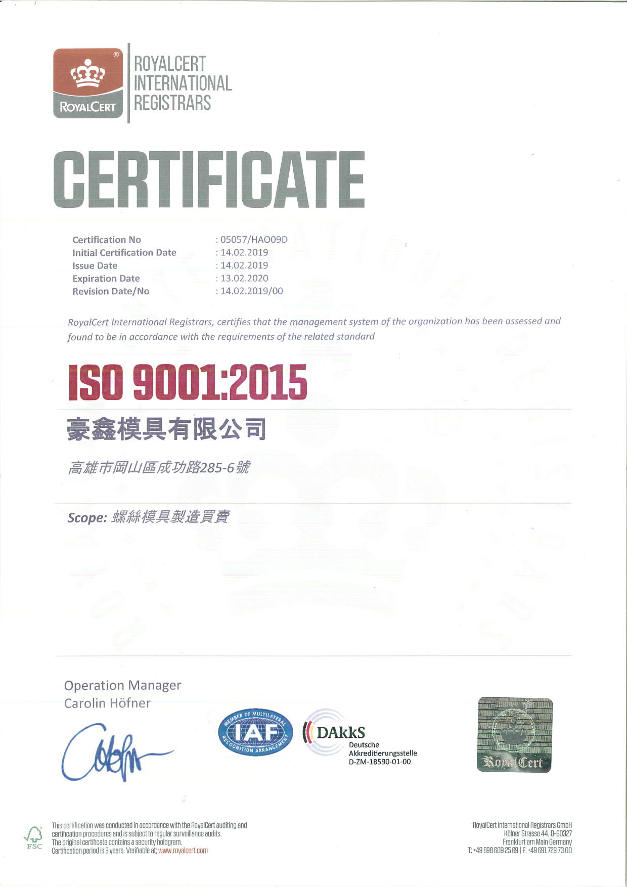 豪鑫模具有限公司成立於2005年,(原”臺牙興業有限公司”)為專業牙板製造商。主要產品為機械牙及尖尾牙牙板。